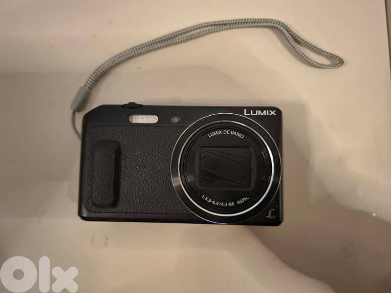 Panasonic DMC TZ57 still like new, operates perfectly. 16 megapixels CMOS sensor, 20x optical zoom, and Flip-screen. WIFI connection, and comes with its charging USB cable. Free delivery available.