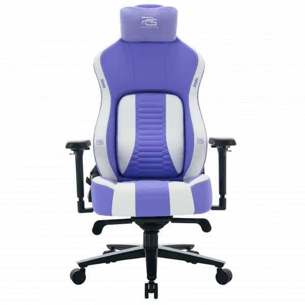 Adjustable seat height 45-55cm Armrest 4D Backrest recliner 90-135॰ Base metal Color White/purple Material semi PU Maximum load up to 136kg Mechansim frog