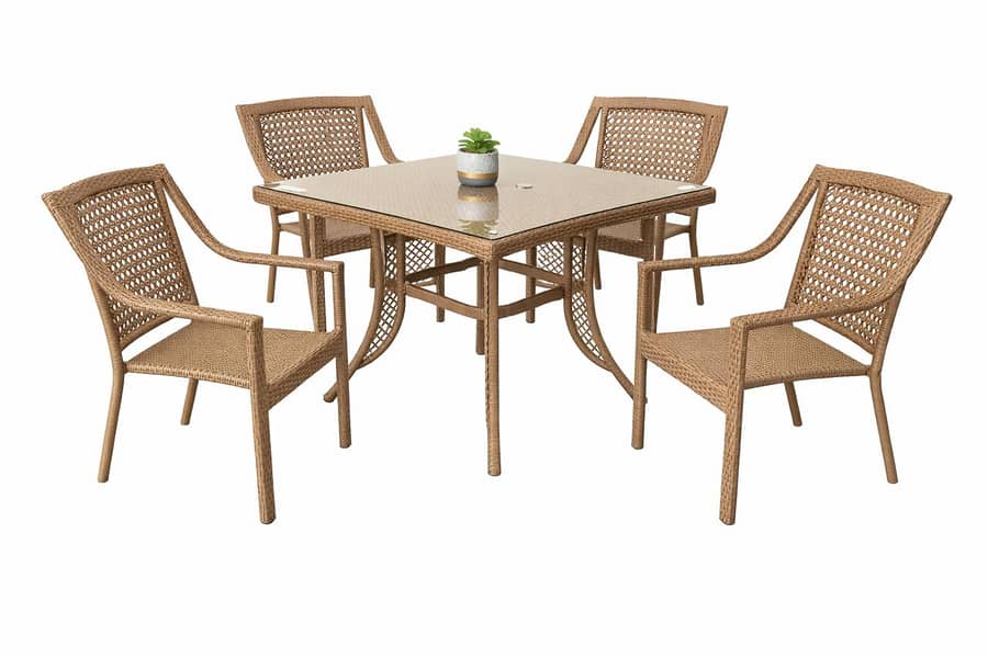 Crafted from premium, hand-woven resin rattan in a versatile natural honey tone, this set is engineered to provide a professional, luxury aesthetic that complements both traditional estates and modern minimalist terraces. The reinforced tempered glass tabletop is designed for easy maintenance and safety, while the breathable weave of the chairs ensures maximum comfort during the warm July heat. Built with UV-stabilized materials, this outdoor dining suite is designed to resist fading and weather wear, maintaining its high-end finish for years to come.