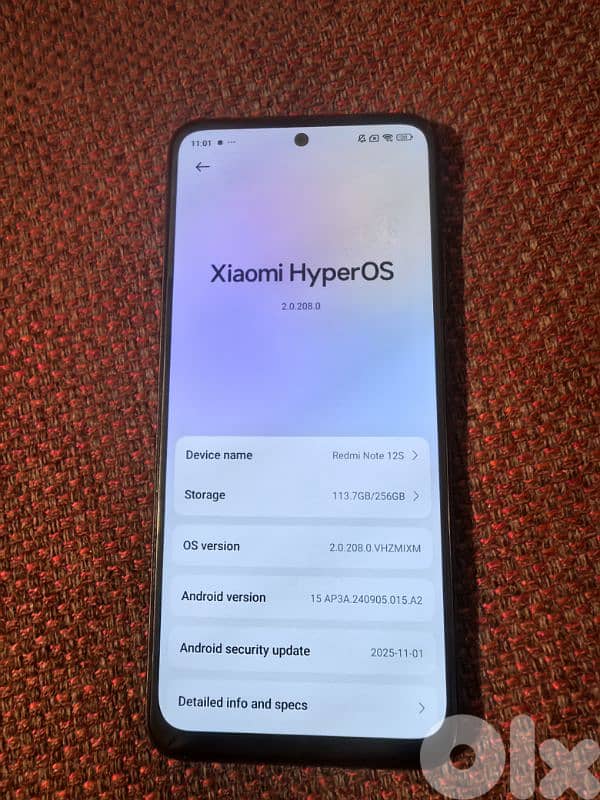 redmi note 12s 256GB RAM 8GB like new ma3 3olbto w8rado