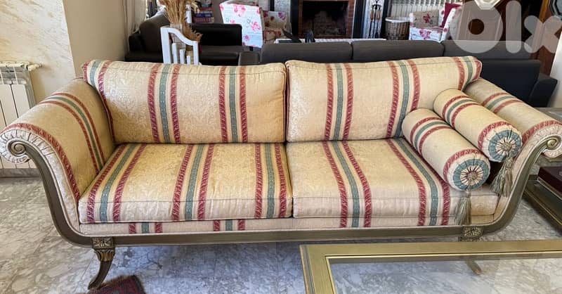 1 big sofa 2 single sofas 2 arm chairs 2 small tables 1 medium table used but condition as new