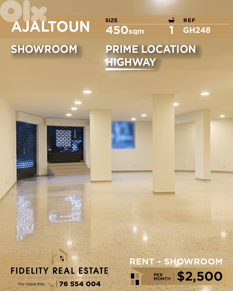 A 450sqm showroom for rent in Ajaltoun - Highway GH248