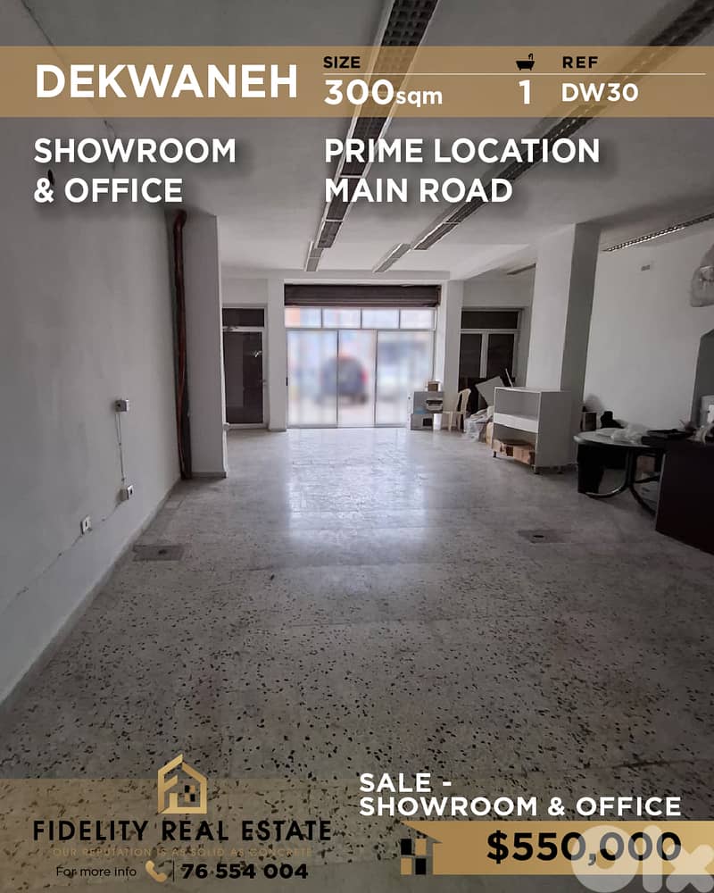 A 200 SQM Showroom and 100 SQM Office for Sale in Dekwaneh DW30
