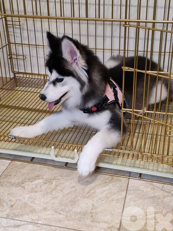 A vaccinated female husky 5 months old with a vaccinated record book M3 cage w all her related toys w food