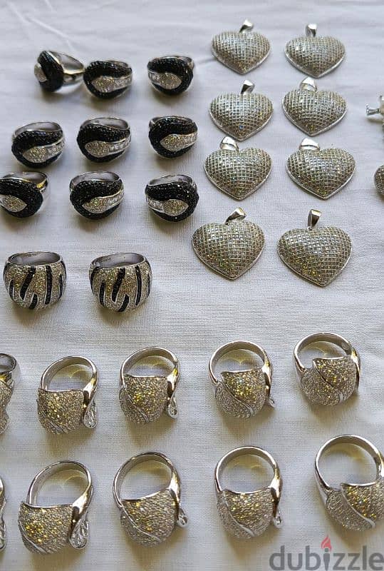 silver rings and necklaces and earrings