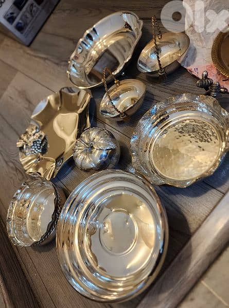 All types Of silverware: Silver-plated . Polished with silvo will return brand new Trays, Serving Dishes of all sizes, platters, bonbonnières, centre de tables, cutlery, etc. . .