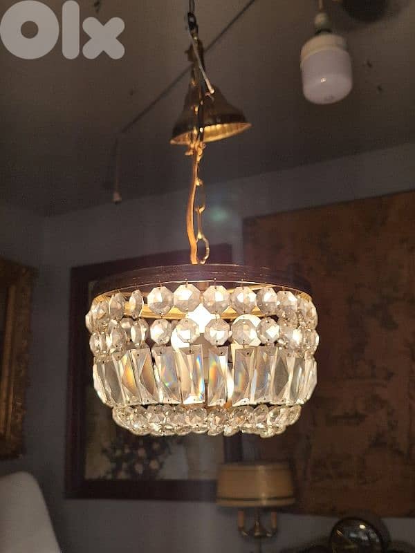 antique small original crystal czech chandelier
