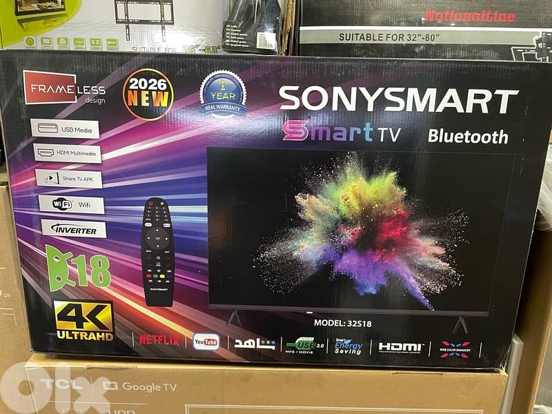 Sonysmart available 32 inch 100$ 43 inch 155$ 50 inch 215$ smart TV usb media hdmi share tv APK wifi inverter android 18 4k ultra HD mode 32S18 1 year warranty