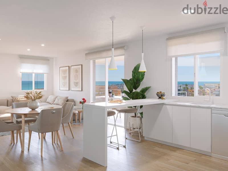 Discover Your New Home! We present these exclusive apartments on the beach of Tavernes de la Valldigna, designed to offer you maximum comfort and energy efficiency. We have 2 and 3 bedroom apartments, ideal to adapt to your needs. Outstanding Features: Energy Efficiency A: Enjoy a sustainable home that reduces energy consumption and cares for the environment. High Quality Finishes: Porcelain flooring that combines elegance and durability, together with white lacquered doors that provide luminosity and modernity to each space. Built-in Wardrobes: Large built-in wardrobes that optimize space and offer practical and functional storage. Semi-Open Kitchen: A semi-open kitchen with a porcelain-type countertop, ideal for enjoying moments with family or friends while cooking. Exterior Carpentry: White lacquered aluminum with thermal break and double glazing, guaranteeing excellent thermal and acoustic insulation. Hot Water Installation by Aerothermal System: Innovative technology that provides hot water in an efficient and environmentally friendly way. Pre-installation of Air Conditioning: It has a space dedicated exclusively to the installation of the air conditioning machines outside the apartment. This avoids noise and does not invade the space of the terraces, guaranteeing your comfort. Sea and Mountain Views: Each apartment offers stunning views of the Mediterranean Sea and the mountains, allowing you to enjoy the beauty of the surroundings from the comfort of your home. Common Areas with Swimming Pool: Relax in the common areas that include a beautiful swimming pool, perfect for cooling off and enjoying the Mediterranean sun. Large Terraces: Enjoy the Mediterranean climate on large terraces, ideal for sharing unforgettable moments outdoors. Guaranteed Privacy: All apartments face outside and there is no dividing wall with the neighbor, ensuring the greatest possible privacy and tranquility in your new home. Don't miss the opportunity to live in a modern, efficient home full of amenities! Contact us today for more information or to arrange a viewing. Your new home is waiting for you!