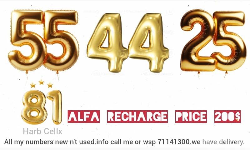 All the numbers new n't used. info call me or whatsapp 71141300. we have delivery.
