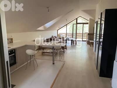 This chalet penthouse offers a rare combination of privacy, space, and character. Located on the top floor, it features a private entrance exclusive to its level. The interior is bright and airy, with a charming semi-slanted roof that adds warmth and architectural appeal. One of the standout features is the spacious open kitchen, ideal for both everyday living and entertaining.