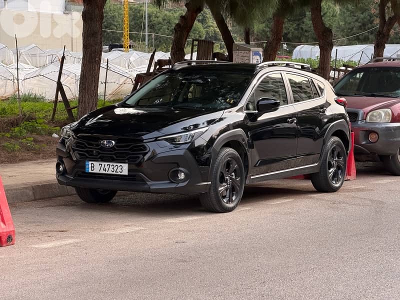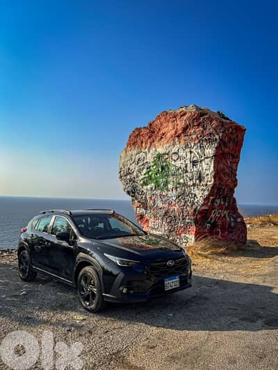Subaru Crosstrek 2023 company source Bazerji Lebanon, metallic black exterior on black fabric interior, fully loaded, full LED adaptive headlights and fog lights, keyless entry and keyless start, rain sensor and light sensor, full eyesight package with autopilot level 2, blindspot assist, distronic, lane keeping assist, emergency braking assist, adaptive cruise control, big infotainment screen with wireless apple carplay and android auto, rear view camera, power mirrors, and many more. Super clean car with no accidents, all services done at the company on time.