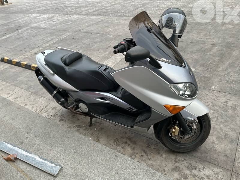tmax 2005 look super clean akrapovic full system exhoust full mallossi kit illa al belt chenged newly mano malossi al engine ekher omro faret bas al moto ba3da meshye well stock exhoust available