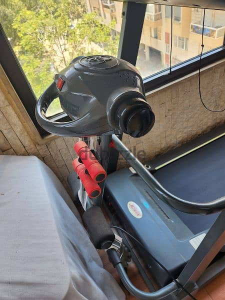 treadmill used as new (used only 5 times ) with 1 pair of dumbells and a machine for hips
