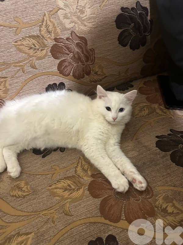 white domestic longhair cat with heterochromia one green eye and one blue 4-5 months old 800$