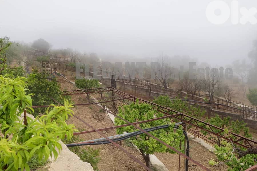 ١- أرض متدرجة مزروعة بالزيتون ومزروعة بنباتات متعددة، يمكن بناء خمسة مبانٍ عليها ومحطة وقود.