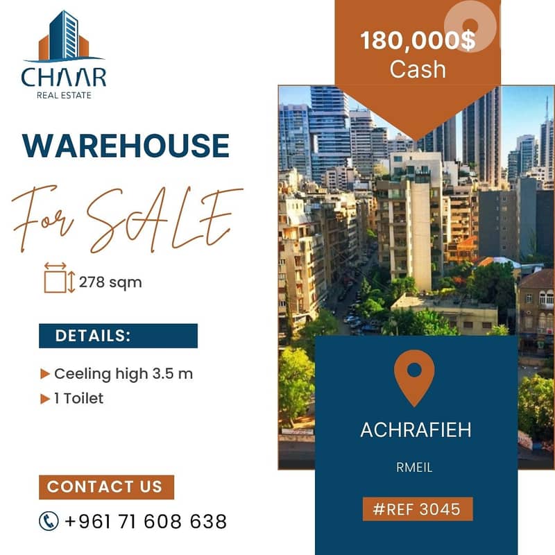 Warehouse for Sale in Achrafieh on the B1 floor.