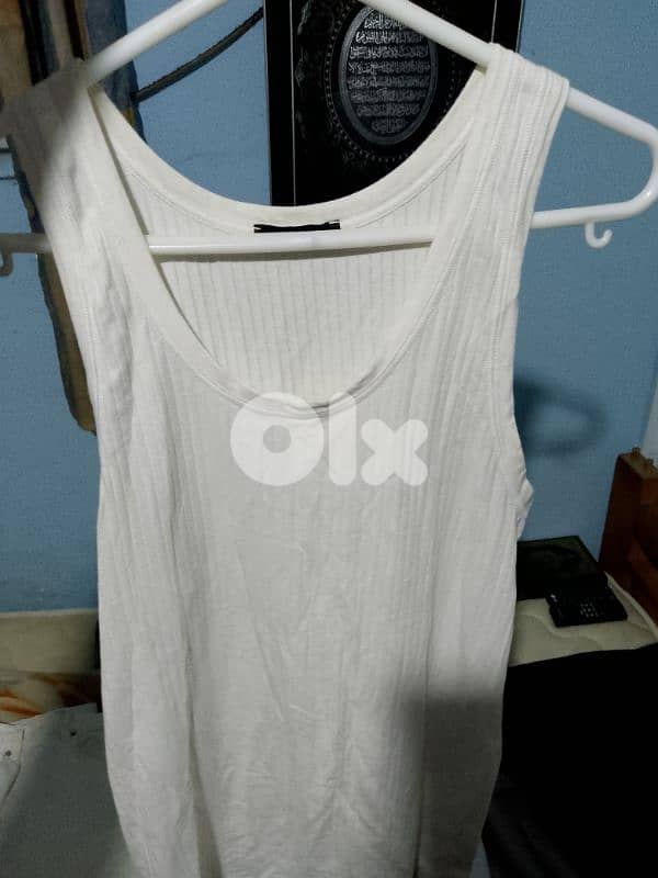 A white sleeveless T-shirt is for sale for 5$ only.
