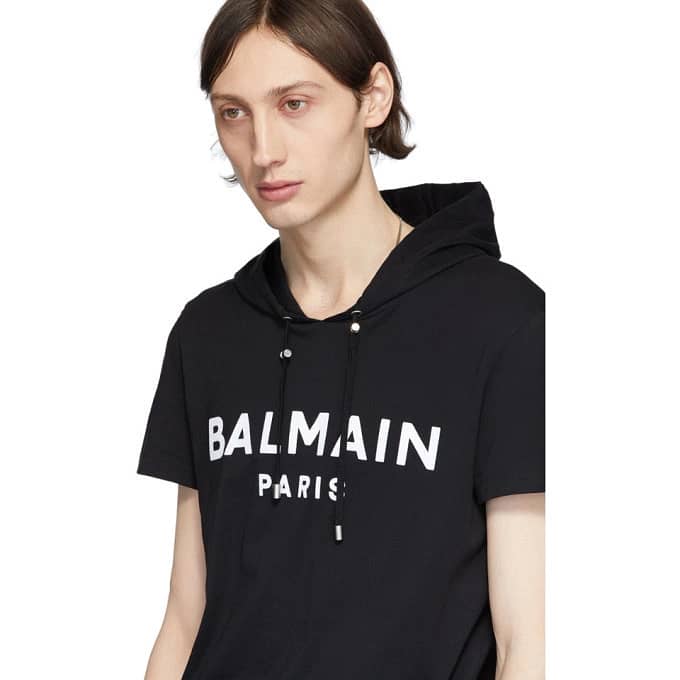 Balmain Black Logo Short Sleeve Hoodie