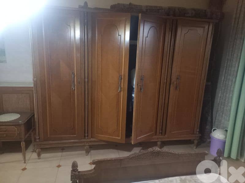 A complete bedroom set consisting of two beds, a wardrobe, and two tables. خشب زينmodel louis XVI