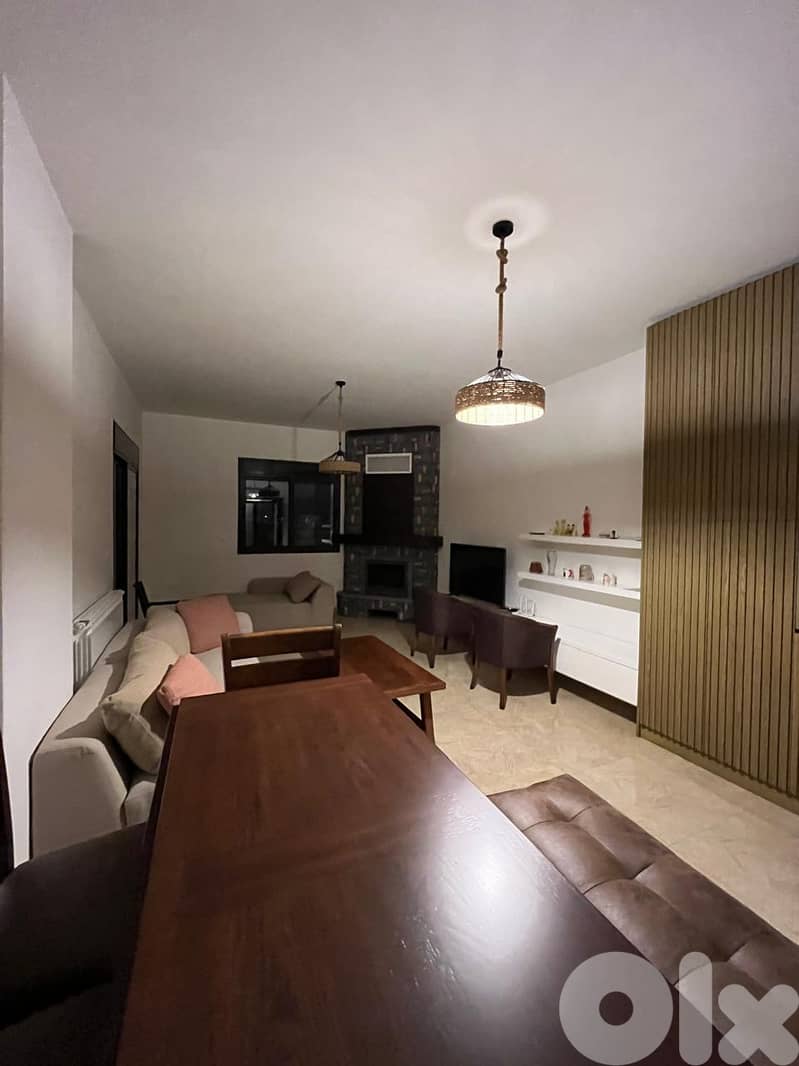 Zahle fully furnished and decorated upgraded apartment consisting of 135 sqm two bedrooms living dining room fully equipped kitchen heating and chimney installed split A/C units installed , it feature a 25 sqm terrace and open view uncovered , it is offered for sale for 145000 $.